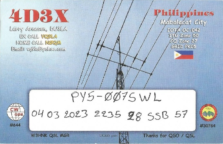 recebido: 4D3X, Mabalacat, Filipinas, 28 MHz, QSO w/ NY3C, WB0LQC, etc (ARRL SSB Contest 2.023).